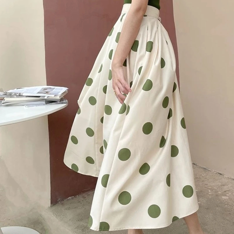 Conçue avec un tissu léger et respirant, la jupe à pois raffinée et décontractée est idéale pour les journées chaudes. Ce matériau vous permet de rester fraîche tout en étant élégante, sans compromettre votre confort. C'est la jupe parfaite pour les saisons estivales ou pour ajouter une touche légère à votre tenue au quotidien.