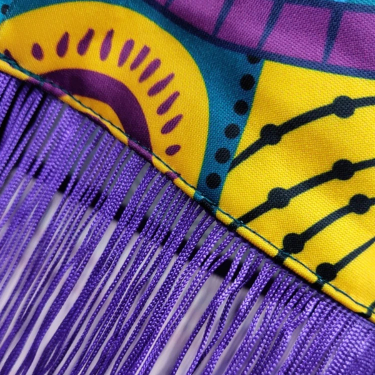 Le tissu léger et respirant permet à l'air de circuler librement, assurant ainsi une sensation de fraîcheur tout au long de la journée. De plus, les franges positionnées en bas de la jupe permet une grande liberté de mouvement, vous permettant de vous déplacer avec aisance et élégance. Cette jupe africaine à imprimé floral est polyvalente et peut être portée dans de nombreuses occasions.