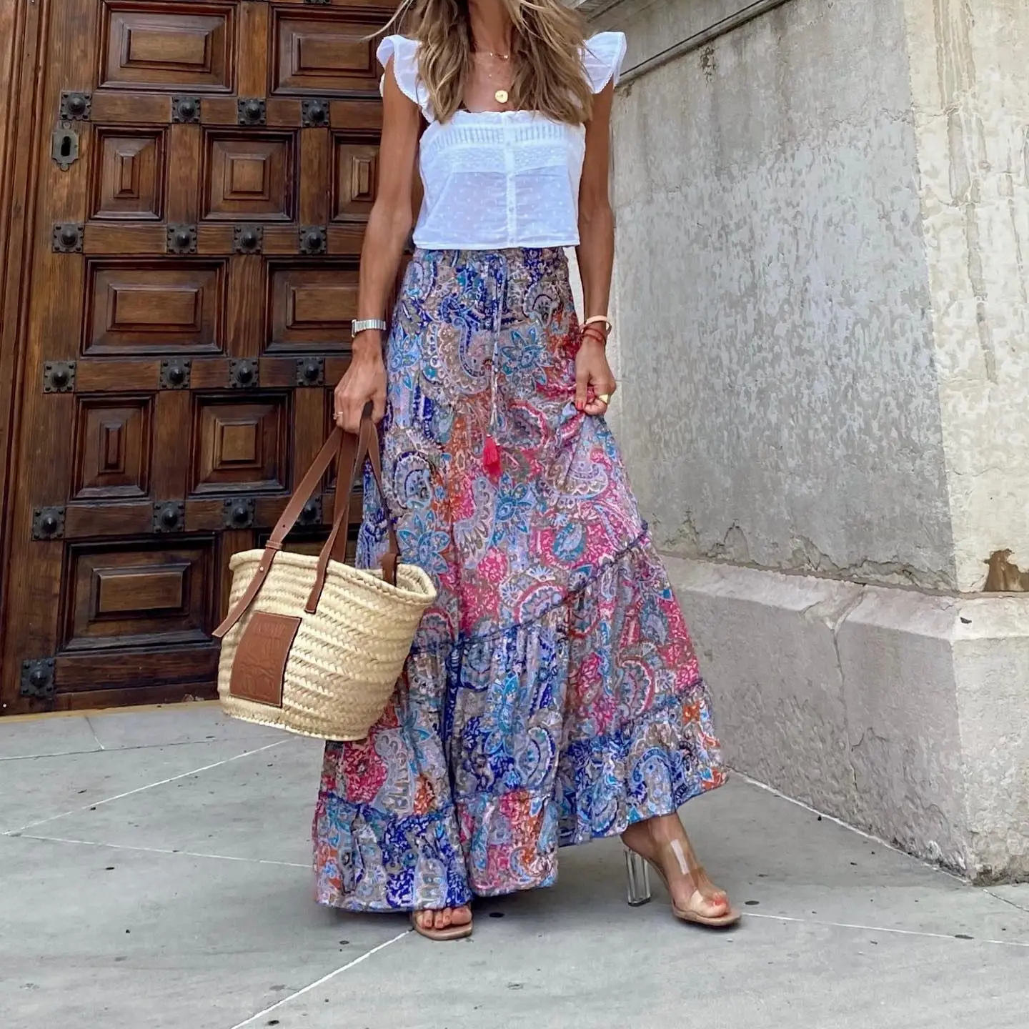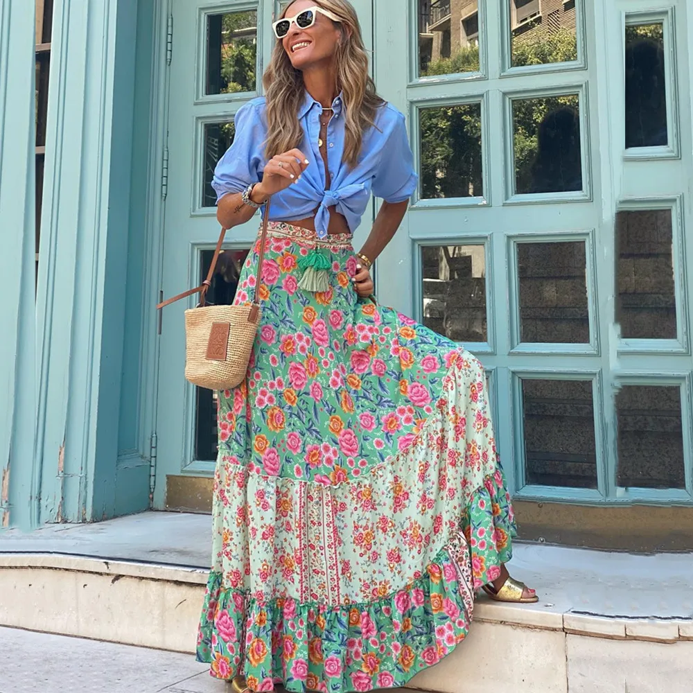 Jupe bohême longue imprimé à fleurs