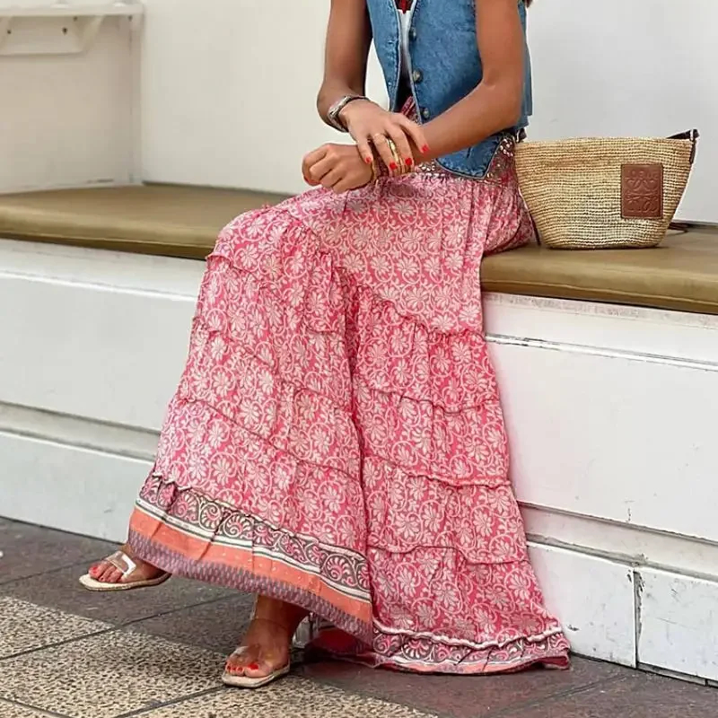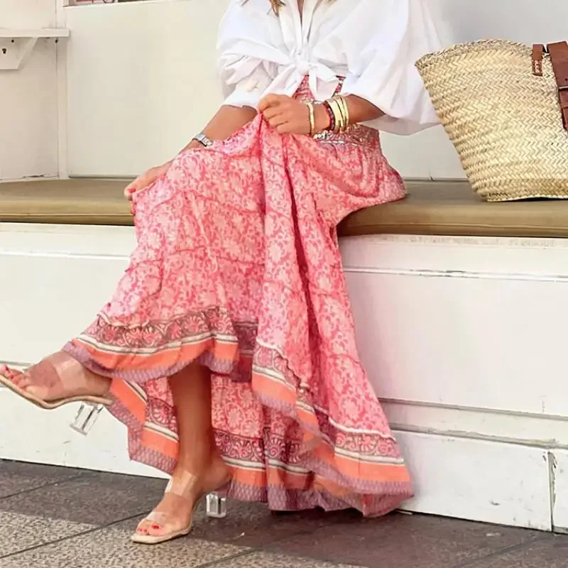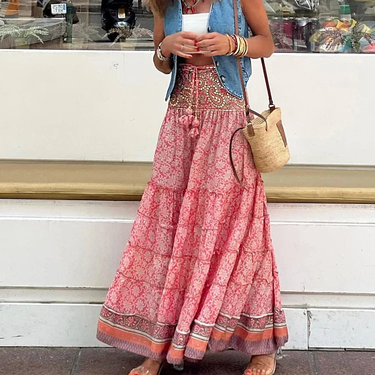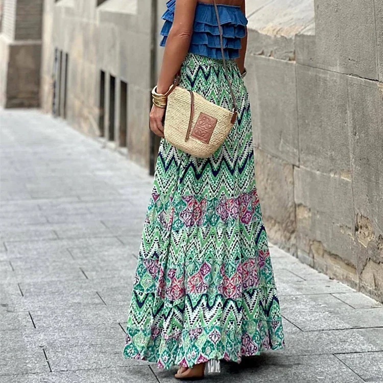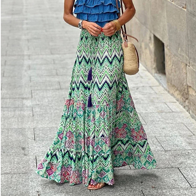 Jupe bohème longue imprimée à motif géométrique