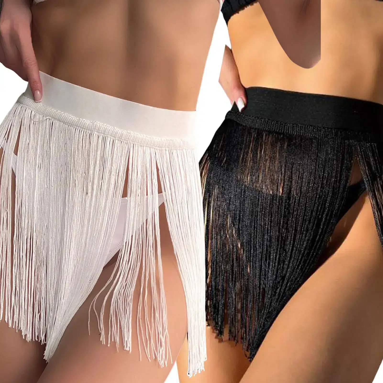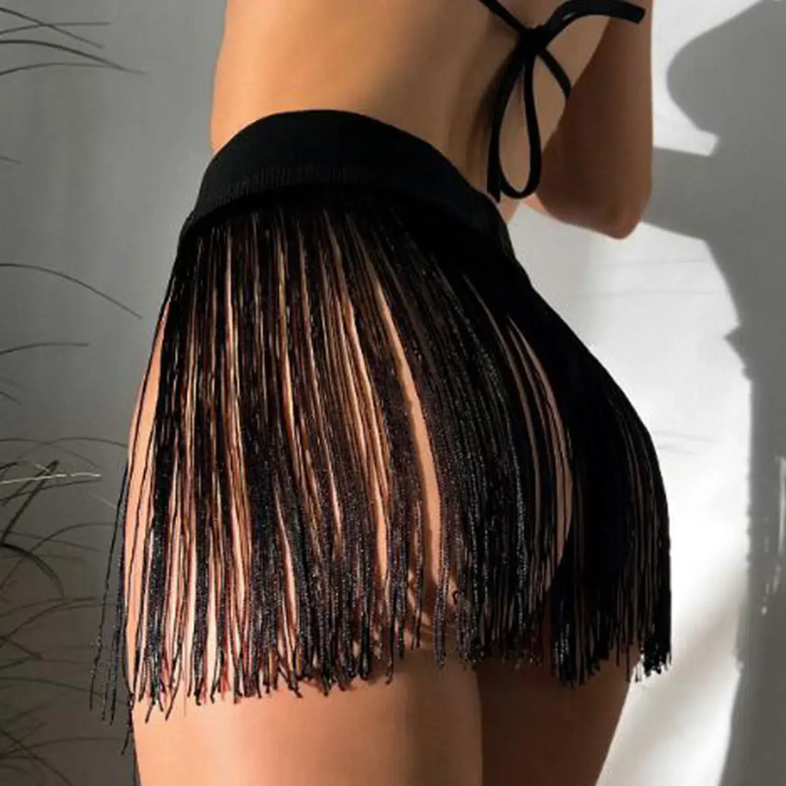 Cette jupe de plage mini à taille haute façon pagne vous est proposée en noir ou en blanc : la douceur de ses franges en bambou apporte un confort inégalé. Son look très sexy est cependant lié à une certaine sophistication grâce à la large taille et à la finesse de ses franges.