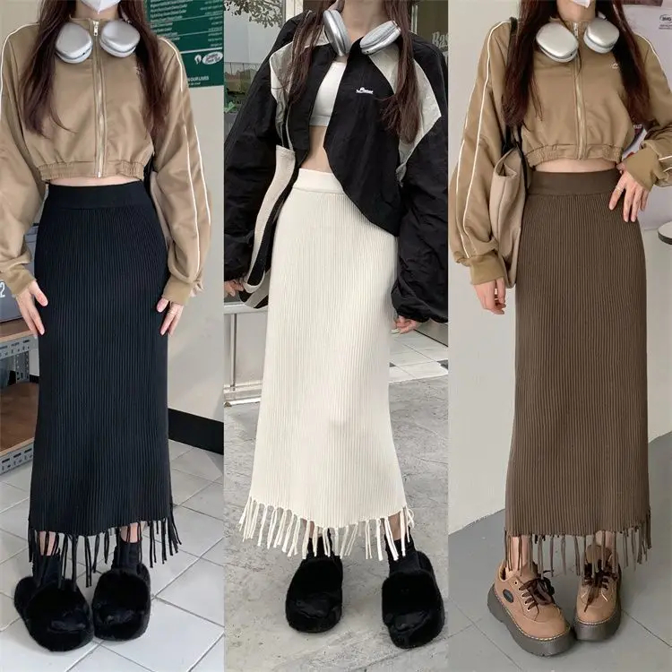 Cette jupe droite longue en tricot à franges est prévue pour porter en automne et en hiver : elle est chaude et son look cocoon et confortable est très tendance. Elle allie très harmonieusement les côté cool et élégant et, avec chacune des trois couleurs proposées se combinera facilement à tous vos tops courts ou longs et vos chaussures ou boots.
