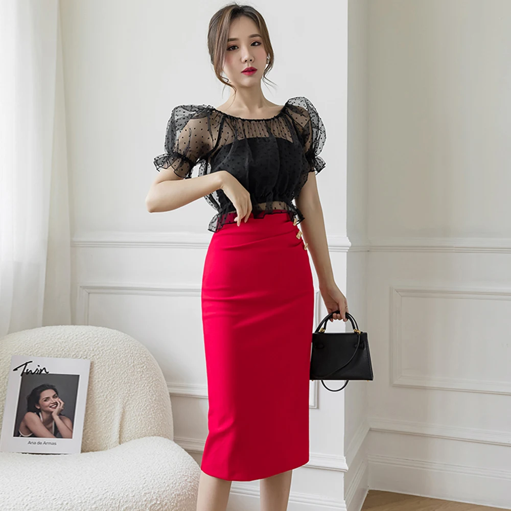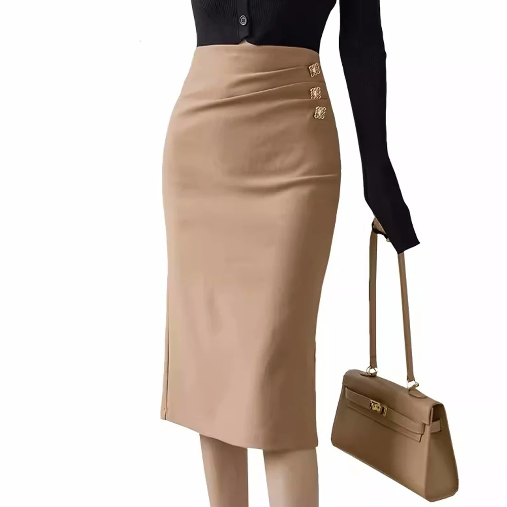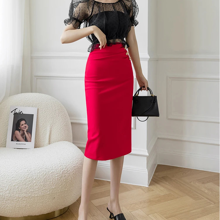 Jupe droite mi-longue léger drapé devant