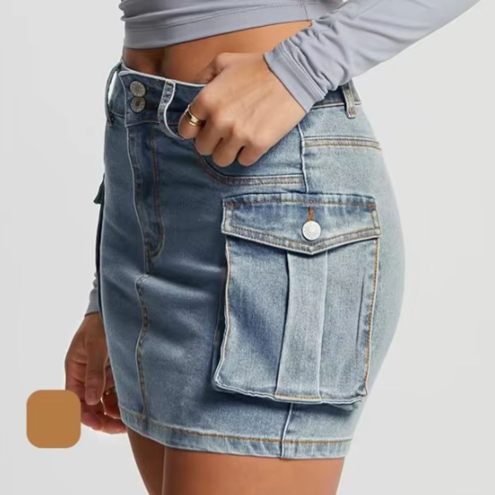 Cette jupe en denim révèle la beauté intemporelle du jean traditionnel adapté aux exigences modernes de confort et d'esthétique. Le tissu denim de qualité supérieure offre une résistance tout en conservant la souplesse nécessaire au bien-être quotidien. Cette matière noble vieillit magnifiquement en développant patine unique qui personnalise votre jupe au fil du temps. La texture caractéristique du denim apporte authenticité et caractère à cette création moderne qui respecte l'héritage du jean.