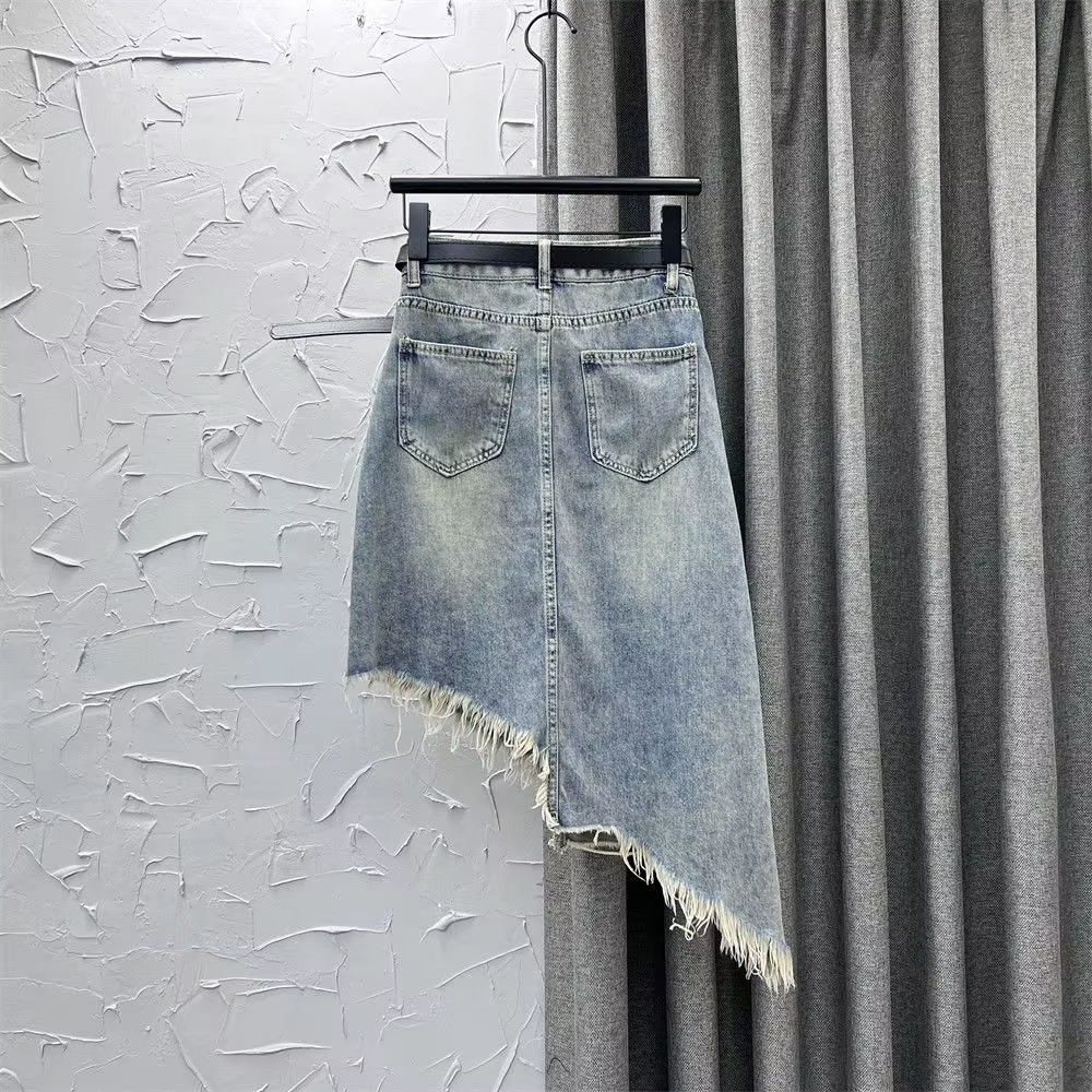 Jupe en Jean Irrégulière à Franges