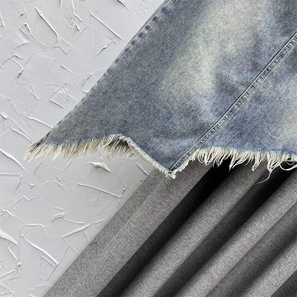 Cette jupe en denim révèle la beauté brute du jean traditionnel sublimé par un travail d'effilochage artistique maîtrisé. La qualité du denim garantit que les franges gardent leur forme et leur mouvement naturel durablement. Ce tissu iconique développe son caractère propre tout en préservant l'intégrité des détails frangés travaillés. Un choix qui assure longévité à cette pièce aux finitions soignées.
