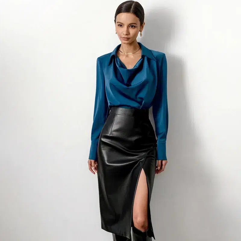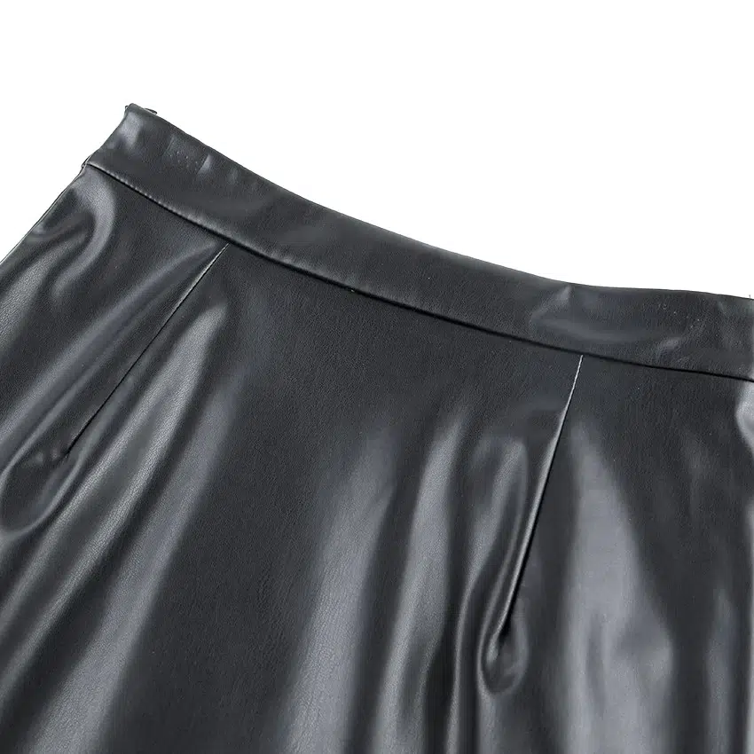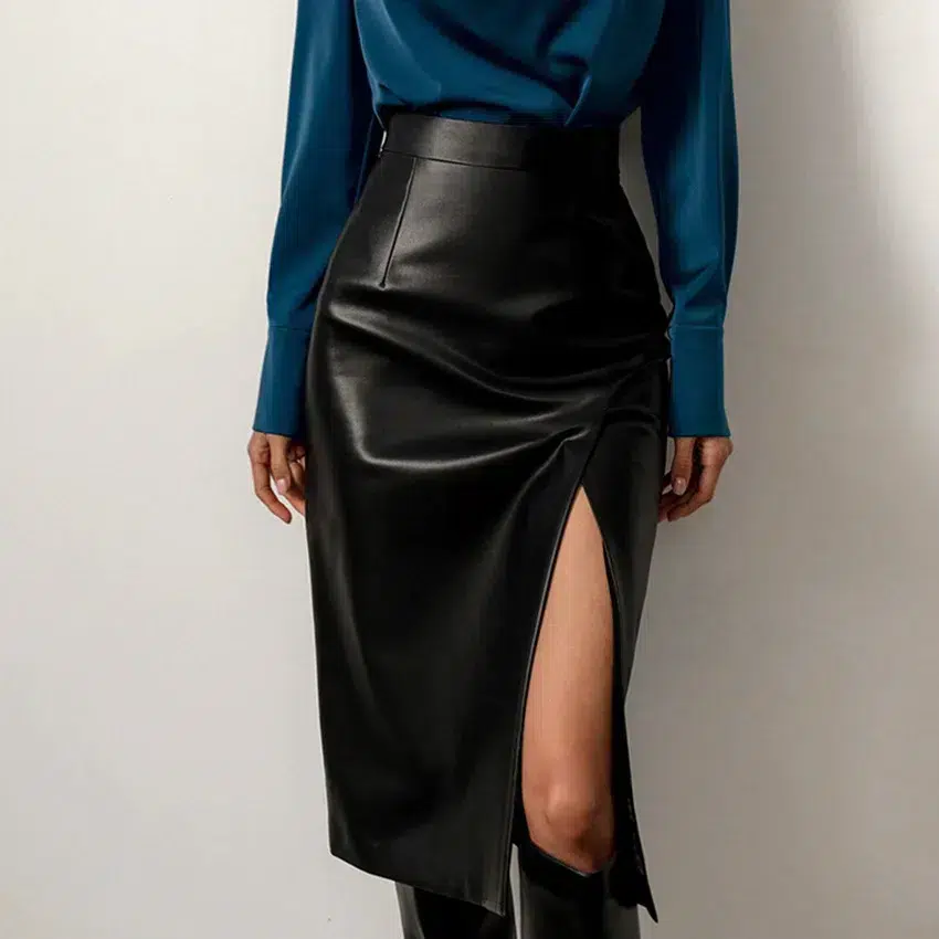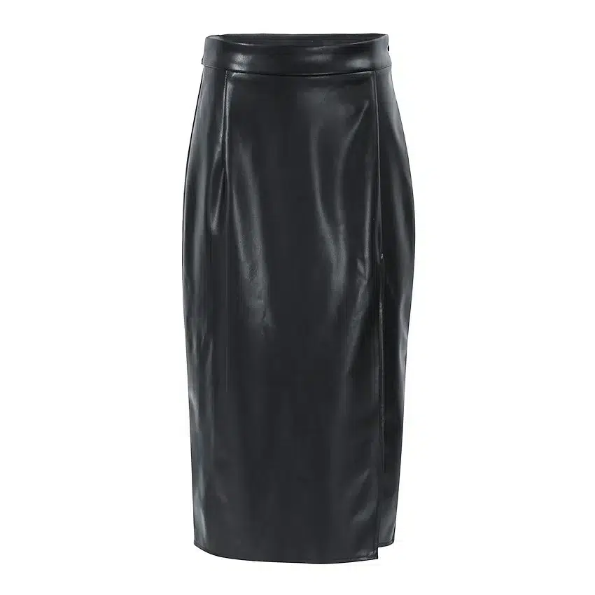 Jupe fendue mi-longue en simili cuir pour femme
