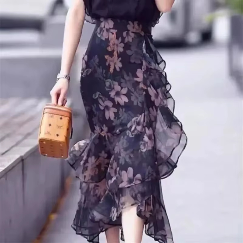 Le style sirène de cette jupe fleurie valorise la silhouette avec grâce. Sa coupe ajustée au niveau des hanches se prolonge en une ouverture fluide qui accompagne chaque pas. Ce détail confère une allure élégante et féminine, idéale pour celles qui souhaitent allonger leur ligne et révéler leur style avec assurance. Le design sirène transforme cette jupe en un vêtement unique et flatteur.