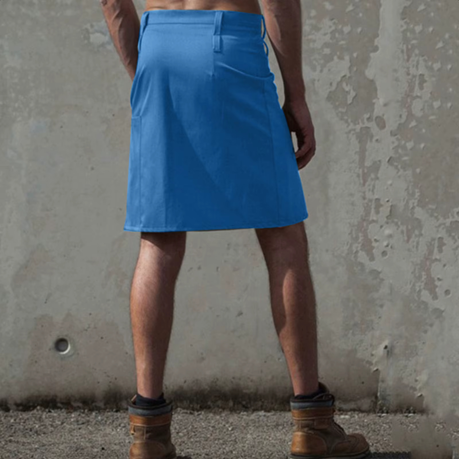 Le bleu choisi pour cette jupe offre une couleur franche qui ne fatigue pas l’œil et qui structure bien la forme sans trop attirer l’attention. Ce ton s’accorde facilement avec d’autres éléments tout en gardant son rôle central. Il donne une assise à la pièce sans l’alourdir et met en valeur les lignes simples du vêtement. La teinte reste propre sur toute la surface ce qui renforce la clarté du design.
