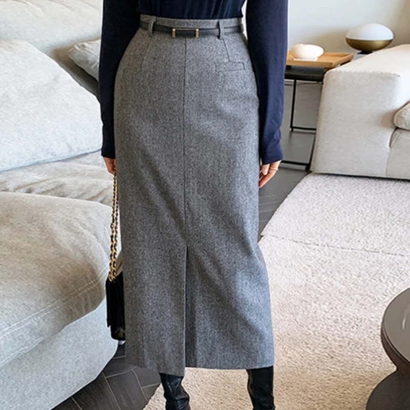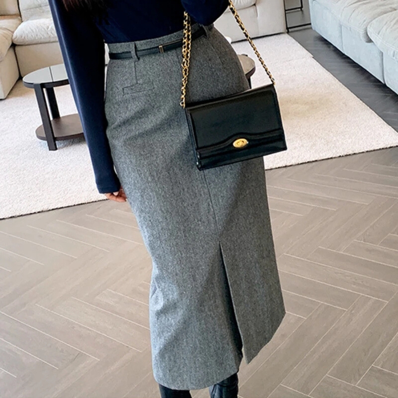 Jupe Laine Fendue Style Vintage