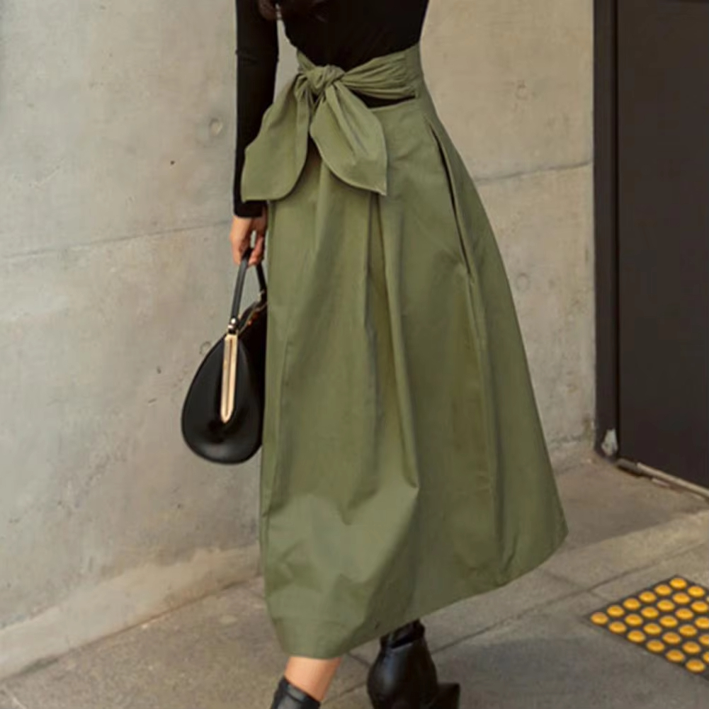 Le vert utilisé ici est dosé avec soin pour offrir un rendu équilibré. Cette couleur permet d’apporter de la fraîcheur à la tenue sans tomber dans l’excès. Le choix du vert renforce l’aspect moderne de la jupe et accentue la pureté de la ligne. C’est une teinte qui reste facile à associer tout en marquant un vrai choix stylistique. Elle donne du relief à l’ensemble et s’accorde bien avec une silhouette nette et simple.