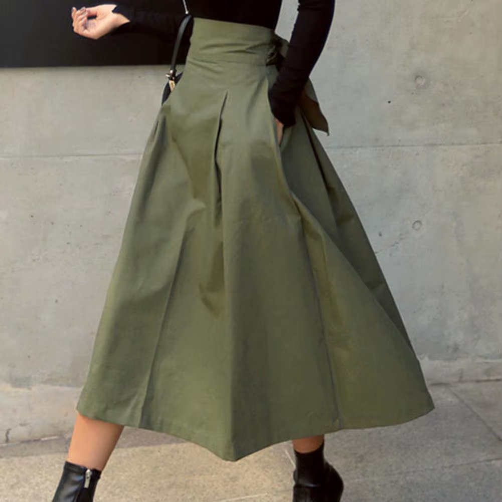 Jupe Midi Verte à Taille Haute