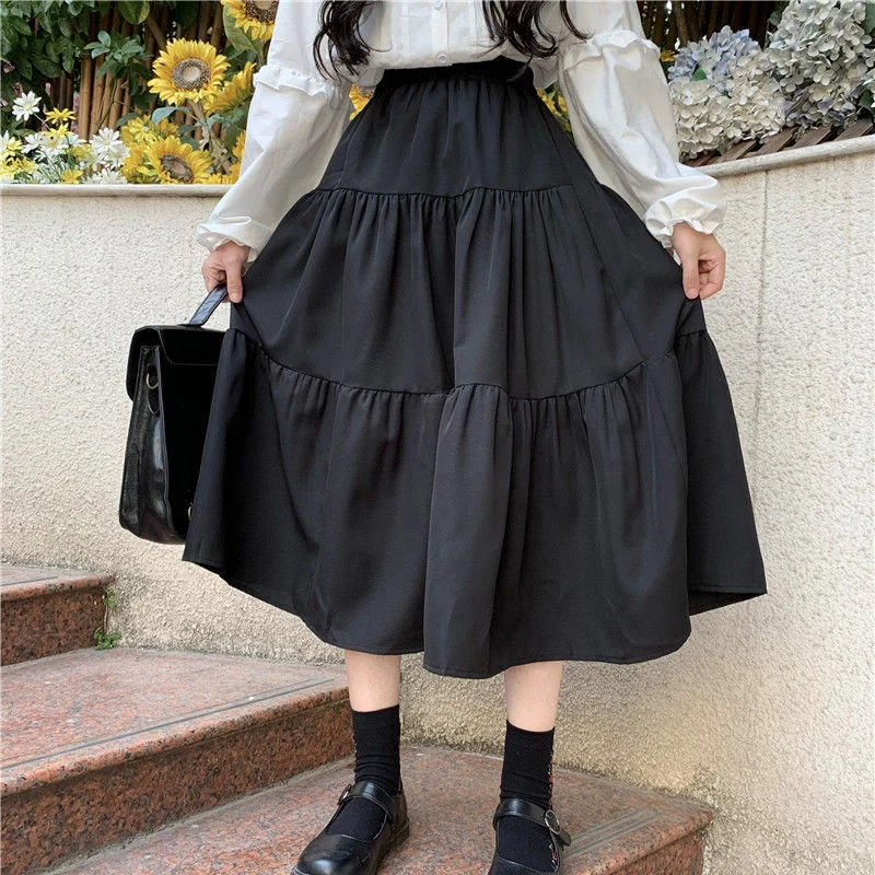 Jupe midi à volants noirs