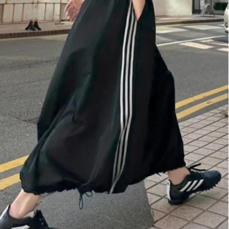 La jupe parachute vintage est également très polyvalente. Le noir, réhaussé par des bandes blanches sur les deux côtés est disponible pour ceux qui aime le look minimaliste et intemporel. En plus de son aspect esthétique, la jupe parachute vintage est également très confortable à porter. Les lacets peuvent vous permettre de la rendre encore gonflée.