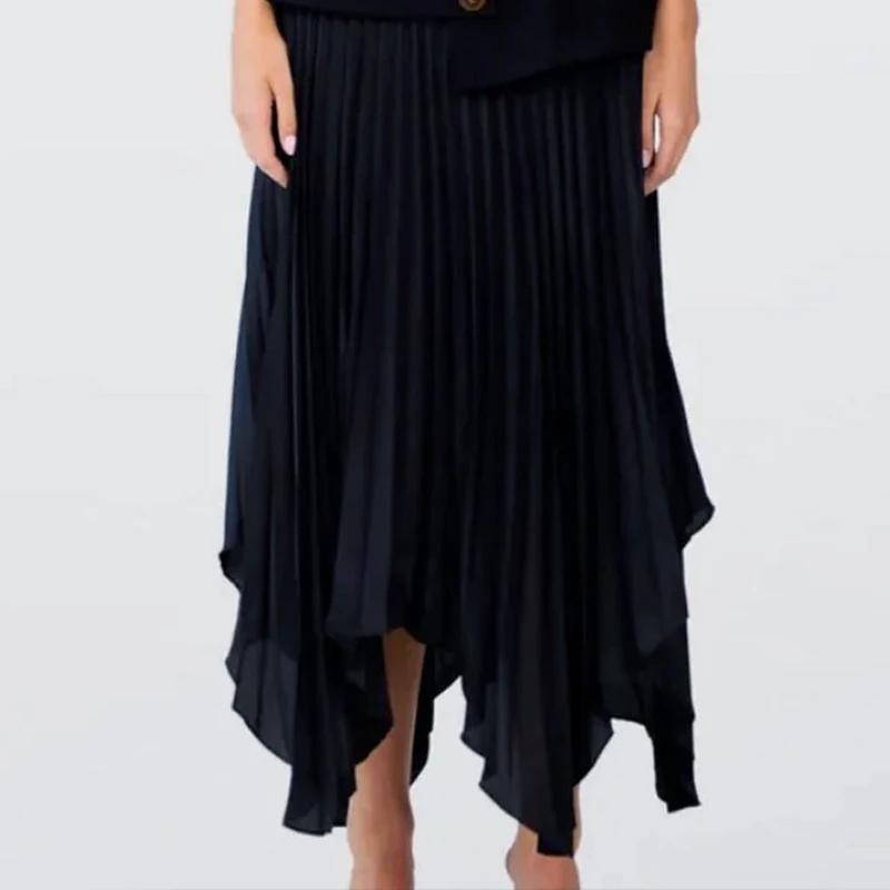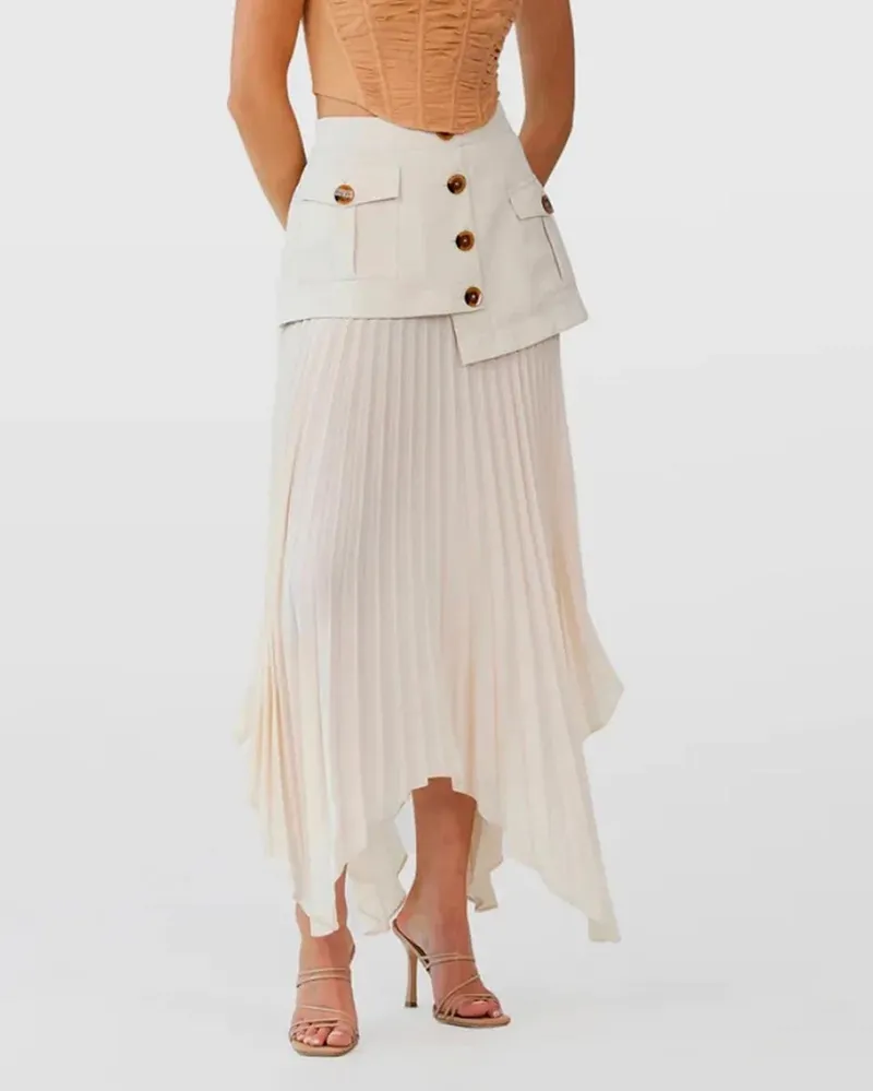 Jupe asymétrique plissée en noir et en beige