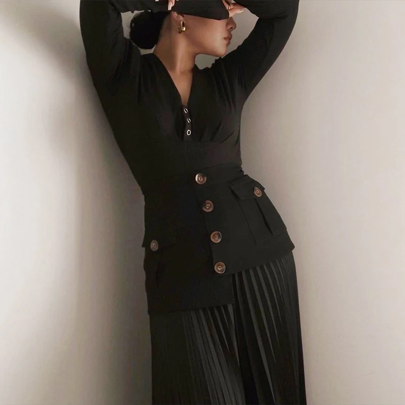 Fabriquée à partir de tissus de qualité, son plissage amène une allure légère. La taille marquée et avec 3 boutons embellie par des boutons dorés lui donne un désign très tendance. L'asymétrie de la jupe ajoute une touche moderne et avant-gardiste à son design. Des pans courts et d'autres plus longs confère une allure aérienne.