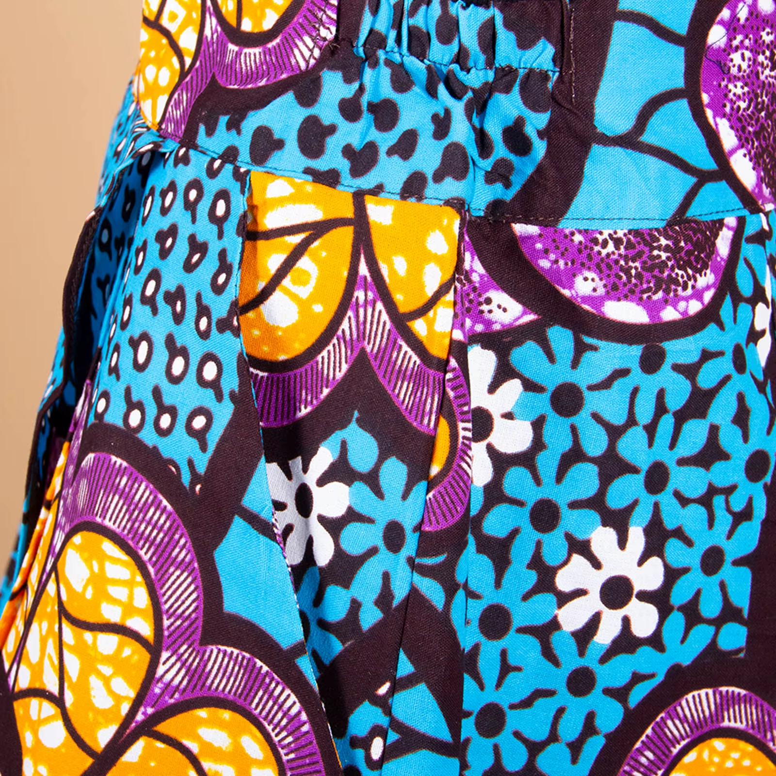 Cette jupe en coton présente une texture dense, choisie pour son toucher agréable et sa capacité à capturer la lumière. La fibre naturelle rend le tissu vivant, presque mouvant à chaque déplacement. La douceur du coton amplifie le dessin des motifs, en soulignant le relief et la finesse des imprimés ethniques. La surface révèle des variations subtiles, entre reflets mats et détails graphiques, dans une impression d’artisanat soigné et captivant.