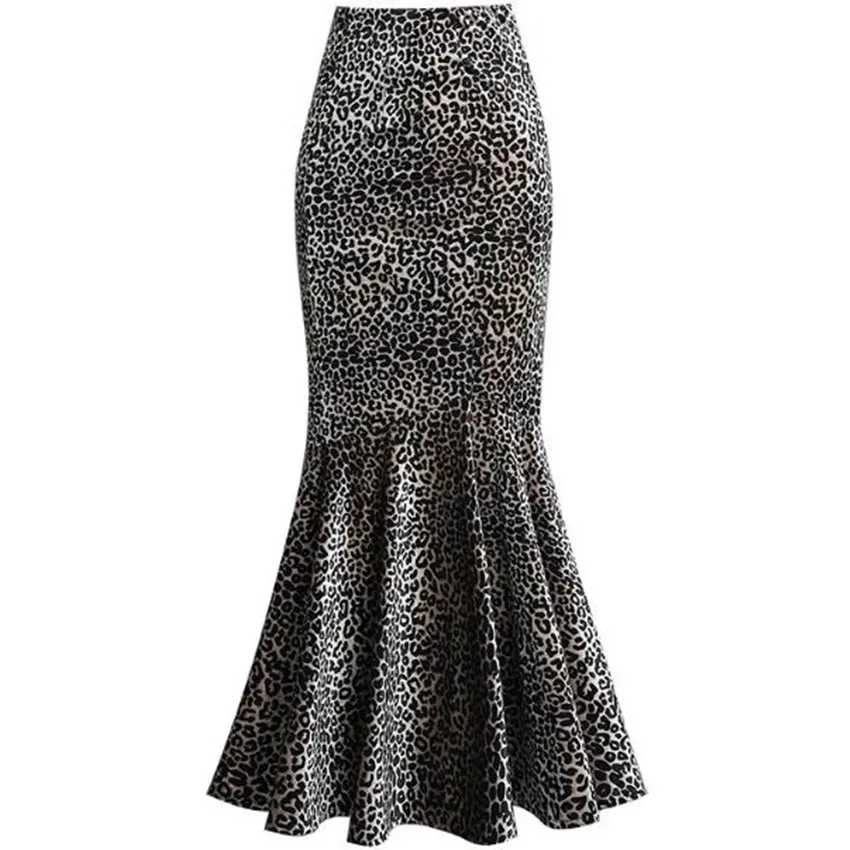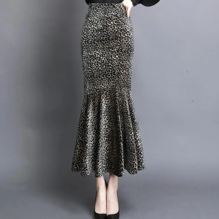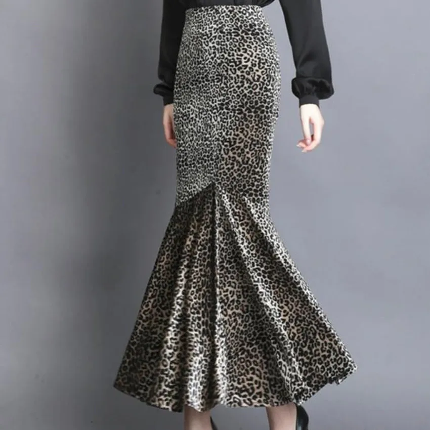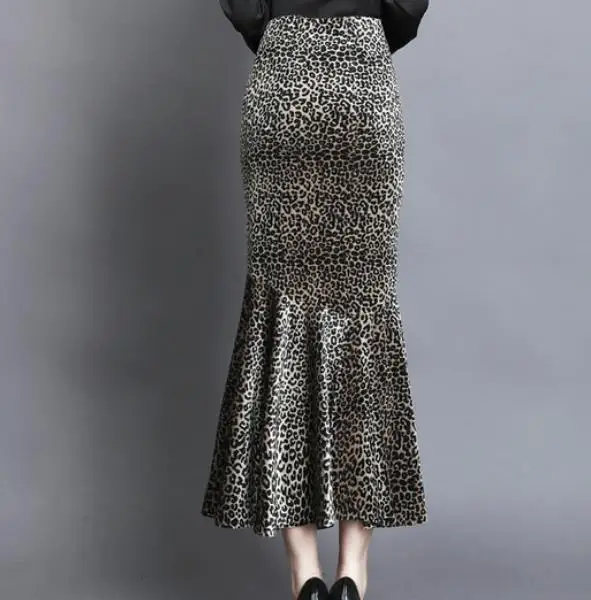 Jupe sirène léopard longue en velours