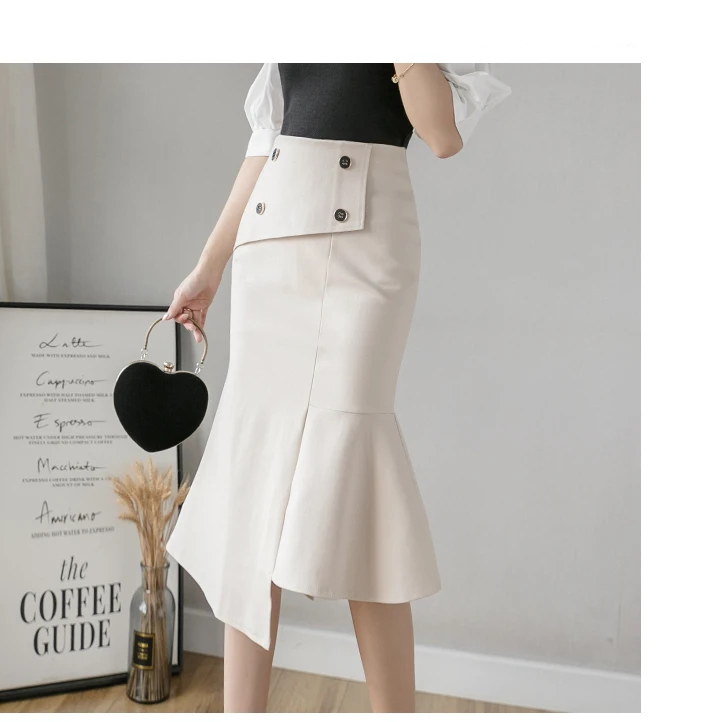 Cette jupe sirène mi-longue asymétrique possède de nombreux détails tous bien réfléchis et exécutés à la perfection. Le soin apporté à la confection de ce modèle est à souligner : la fermeture éclair invisible par exemple en fait partie. Cette jupe au design unique est intemporelle et restera tendance de nombreuses années.