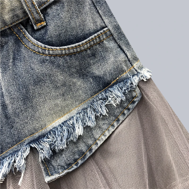 Cette jupe trapèze en dentelle patchwork jean taille haute est conçue dans des tissus de qualité pour être confortable et douce sur la peau. Son look tendance est jeune et dynamique et invite à la fête. De plus, comme vous la porterez de préférence en été ou en mi-saison, cela s'accordera parfaitement à l'esprit des vacances.