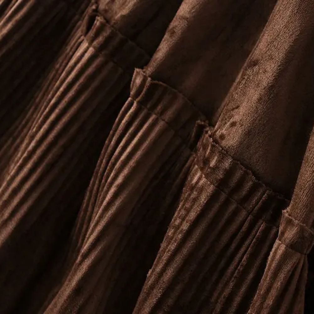 La richesse tactile du velours marie douceur incomparable et résistance remarquable dans une alliance textile parfaite. Le velours transforme chaque mouvement en caresse visuelle et créé une connexion sensorielle unique avec votre environnement. Cette jupe confère un plaisir quotidien qui nourrit votre bien-être esthétique et émotionnel.